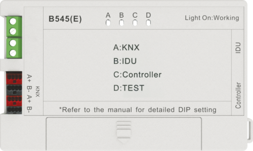 Адаптер преобразования сигнала B545(E) — это специальное устройство, которое подключается напрямую к внутреннему блоку сплит-системы для целей конвертации (преобразования) протокола обмена информацией и позволяет подключать внутренний блок в сеть диспетчеризации на основе стандарта KNX.